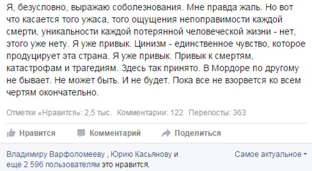 Чего уж тут говорить про какую-то писанину либералов в интернете, правда? Да они же уже по тысяче раз всё про нас написали. Всё, что думают. Написали, сказали, показали. Ну какие еще оскорбления не были произнесены? Как (или - над чем) еще они могли поглумиться, но не поглумились?